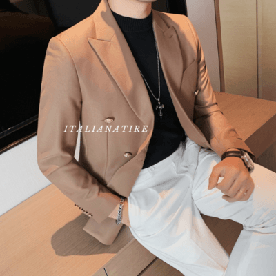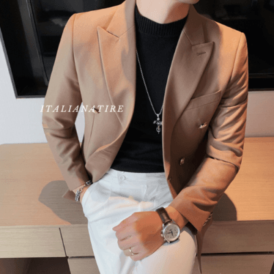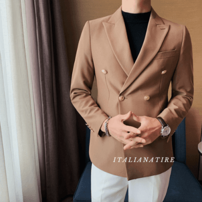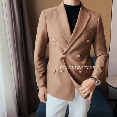 khakhi Double Breasted One piece Blazer by Italian Atire