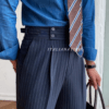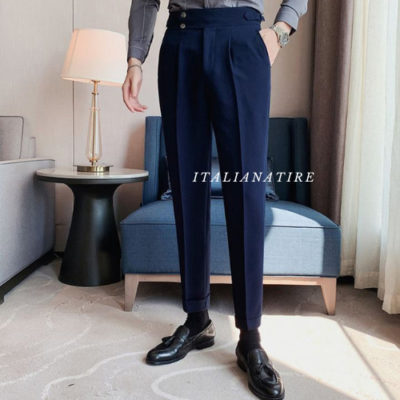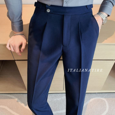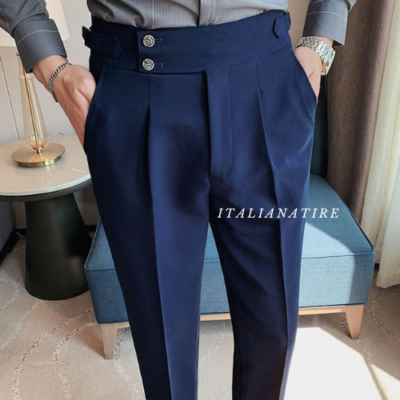 Navy Blue Signature Buttoned Gurkha Pants -by-Italian Atire