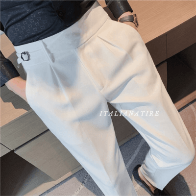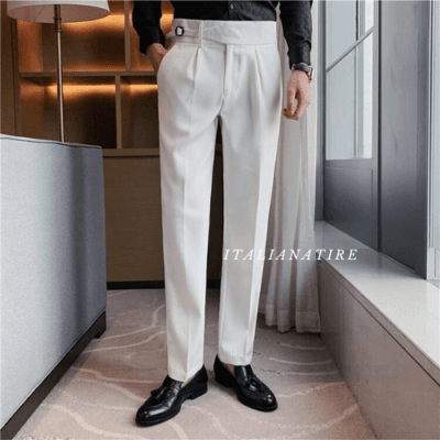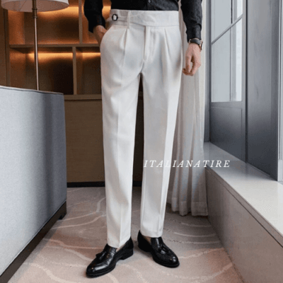 White Single Buckle Gurkha Pants -by-Italian Atire