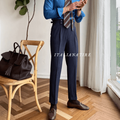 Navy Striped Buttoned Gurkha Pants -by-Italian Atire